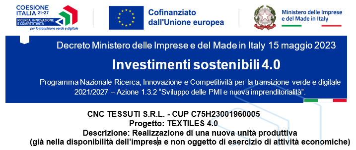 Siamo la CNC TESSUTI, la realtà tessile scelta e apprezzata dalle più autorevoli case di moda di tutto il mondo. Anticipiamo le nuove tendenze osservando con esperienza e intuito l'evoluzione dello stile.